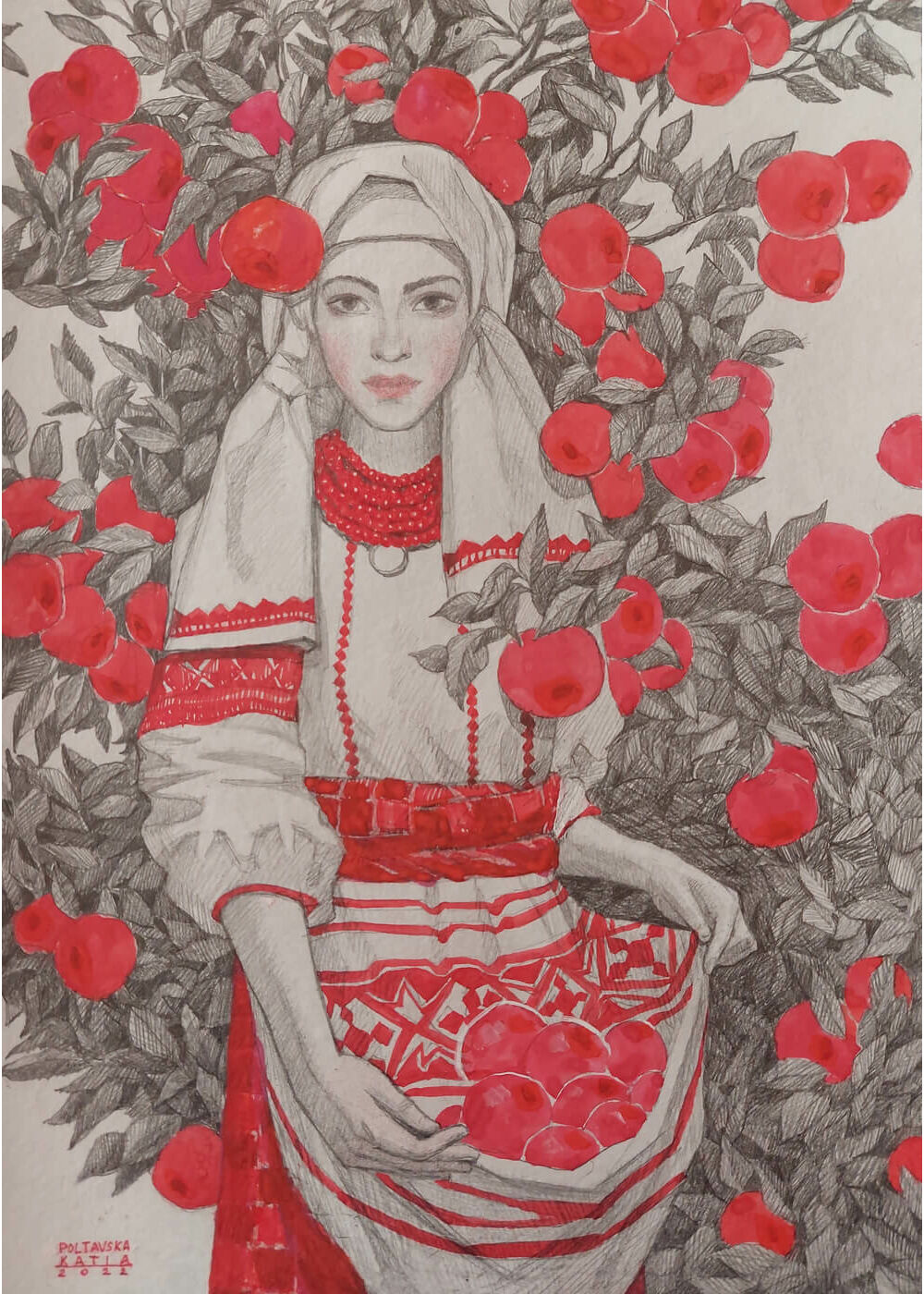 Pencil, gel pen, gouache on paper