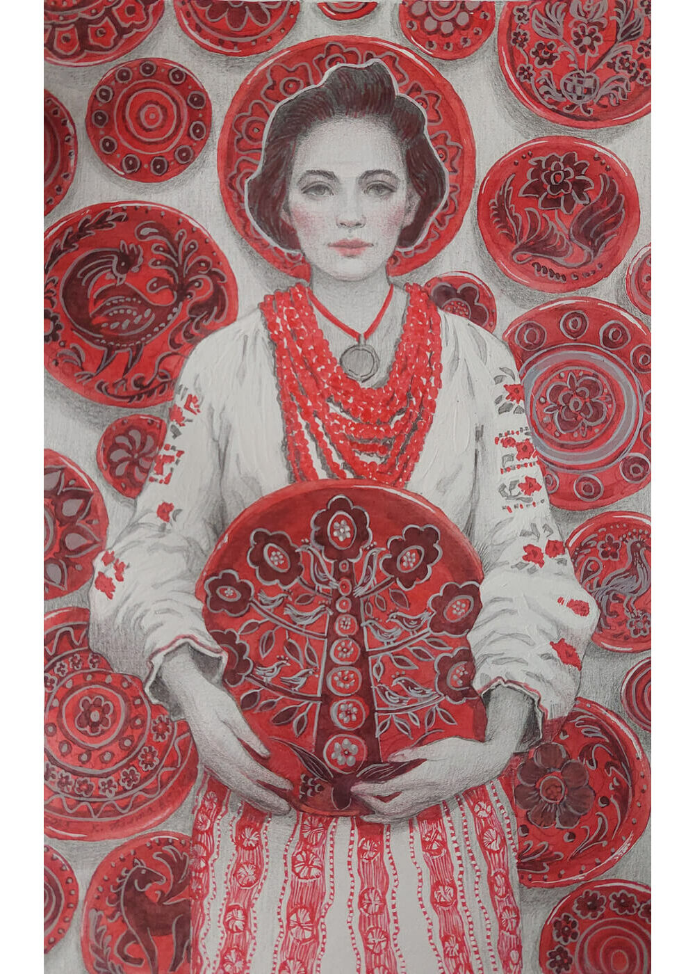 Pencil, watercolor, gel pen, gouache on paper