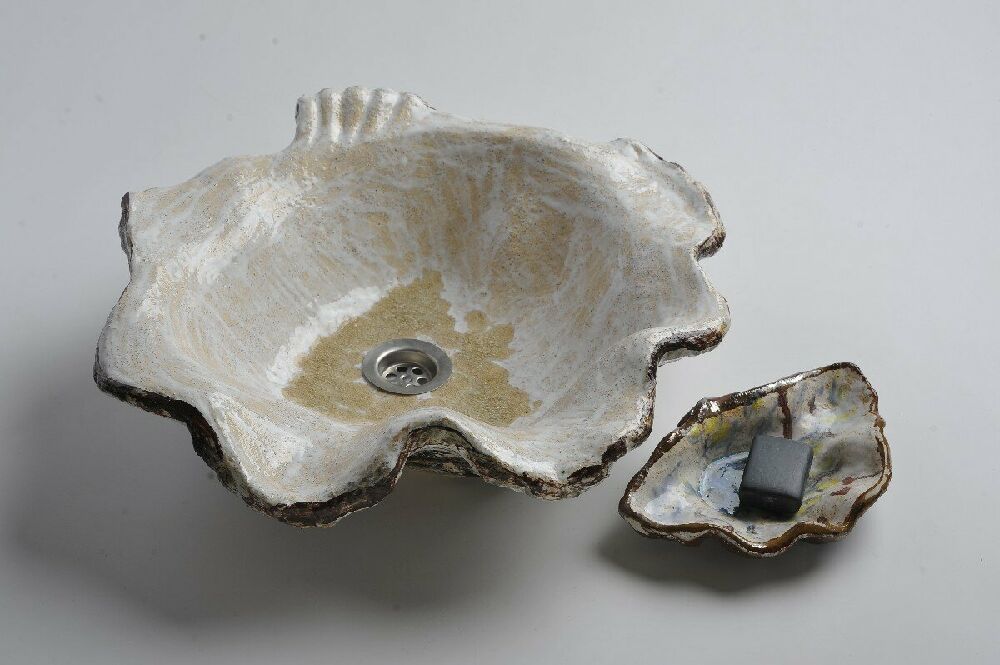 Soap dish and glass for brushes to the washbasin "White shell" (ref. 21730)
