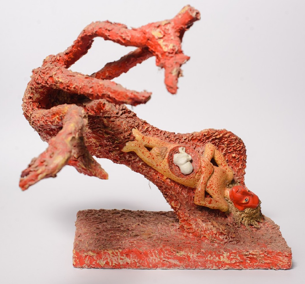 Эта скульптура была создана в 2008 году, когда Россия напала на Грузию. Раскаленное чудовище с выпученными глазами готово проглотить кого угодно. Но во время войны иногда случаются довольно странные вещи. Поэтому, если мы попытаемся посмотреть на войну с другой стороны, то увидим мертвого человека, в утробе которой лежит белый ребенок. Белый цвет новорожденного является символическим, потому что на войне рядом со смертью и предательством случаются и проявления настоящей благородства и героизма.
