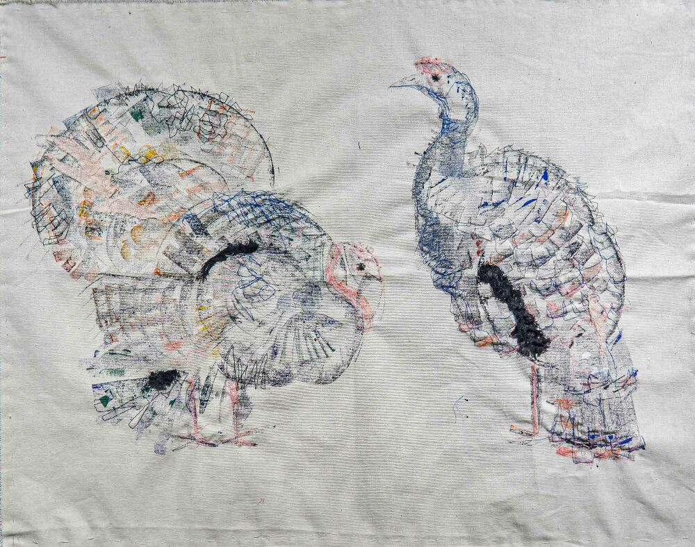 Текстиль, акрил, монотипия, ручная и машинная вышивка