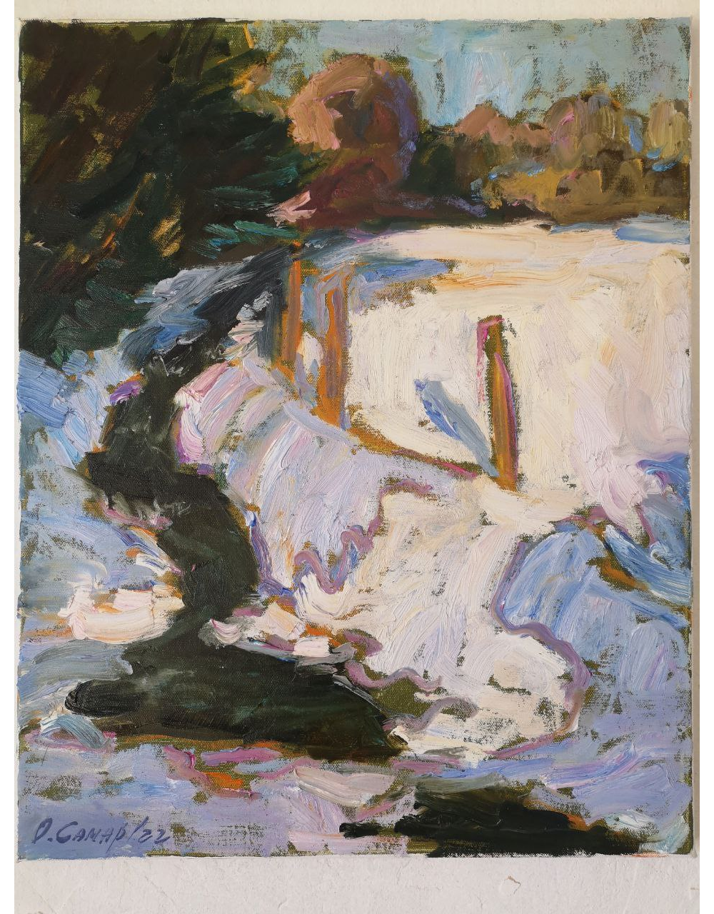 Робота була написана в Литві на міжнародному художньому пленері в березні 2022-го... Мені ніколи так завзято не малювалося, як на цьому пленері. В Литві я навчилася спати після тривожних безсонних ночей, в Литві відродилось моє величезне бажання творити.