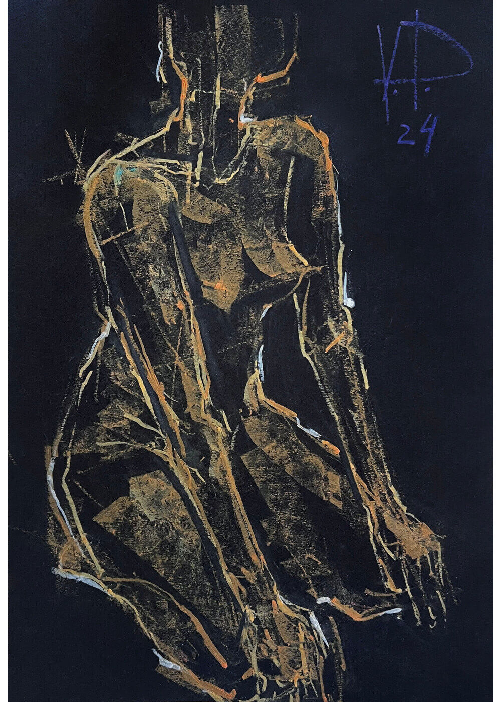 Серія ЧОРНІ ПАСТЕЛІ — це експерименти з дослідженням тіла. Кожна робота створена у форматі 15-хвилинних скетчів з оголеної натури, написаних як під час персонального позування моделей в майстерні художника, так і на публічних рисункових сесіях в галереях Києва та Львова.