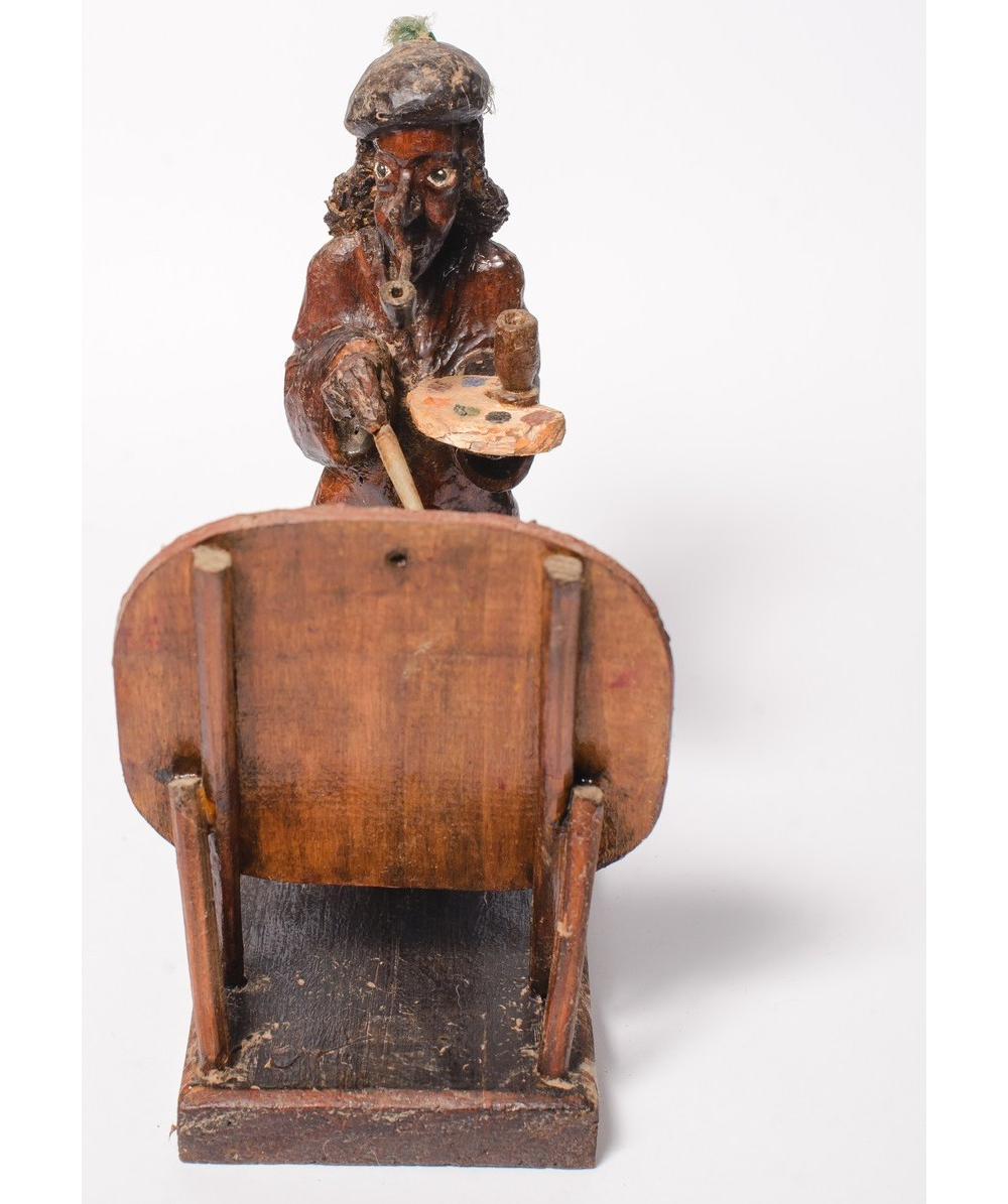 Собирательный образ современных богем со всеми их атрибутами и фишками. Это творческая личность без пола, с перьями на голове, в бесформенной длинной рубашке и тапочках. В зубах - трубка, в которой дымит неизвестно что (возможно, табак, а может, марихуана). В руке - палитра, на которой стоит рюмка или с дешевым вином, или с дорогим виски. Богема смотрит на натурщицу, но погружена только в себе саму...