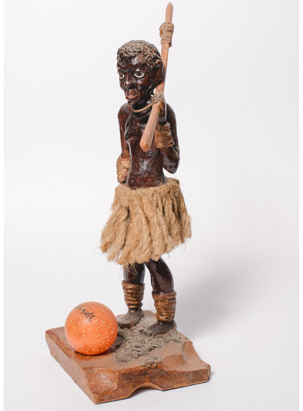 Помните шутливую песенку: "Убили негра"? В ней повествуется о том, что только мертвый негр не идет играть в баскетбол. Зато зомби "могут играть"! Вот и наш африканский герой (он стоит на Африке обеими ногами) — скорее всего местный зомби, и даже в таком состоянии любит играть в баскетбол. Поэтому мяч рядом с ним. Это еще одна шутливая статуэтка Александра Выговского, в которой не стоит искать глубокий смысл.