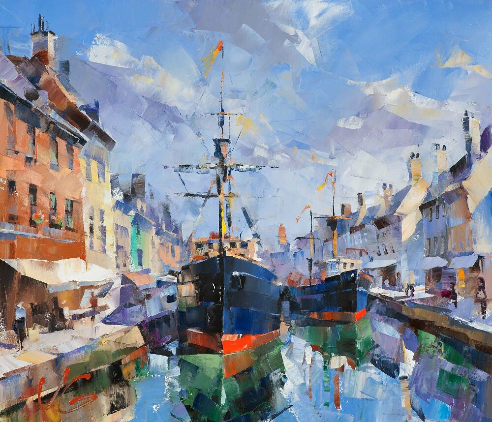 Пориньте у химерний світ вінтажного шарму. Ця чарівна картина перенесе вас у минулу епоху, представляючи молодий порт Гандія як гамірний морський центр початку 20 століття. На цьому химерному зображенні маленькі кораблі тієї епохи пливуть тихими каналами. Яскраві фасади будинків на берегах каналу викликають відчуття тепла і ностальгії, нагадуючи захисні стіни приморської фортеці. Поєднуючи фантазію та ностальгію, полотно запрошує вас здійснити сонячну подорож у часі, де минуле та сьогодення зливаються в одне, прославляючи морську спадщину та мирне існування.
