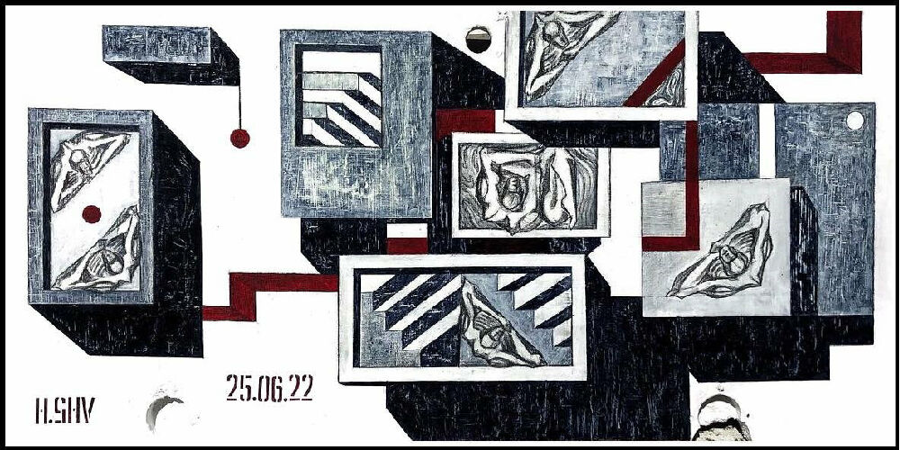 Олія, акрил, вугільний олівець дерев‘яна дошка з коридору