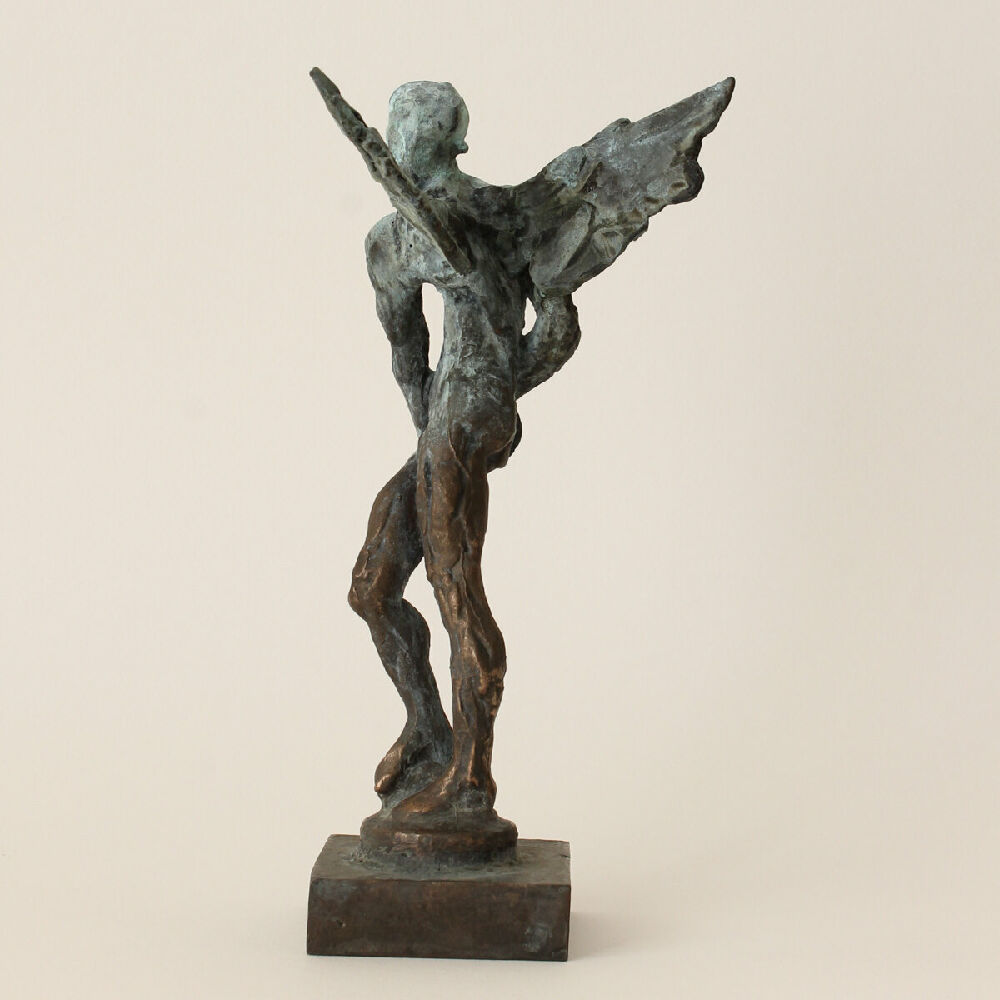 У творі "Мій ангел у полоні" не варто шукати буквальне трактування сюжету. Процес створення скульптури тривав більше одного року. В цьому часі я переживав і виношував багато різних емоцій та ідей. Що і лягло рефлексом в мою роботу. Намагання зрозуміти себе, бути вільним і чесним із собою.