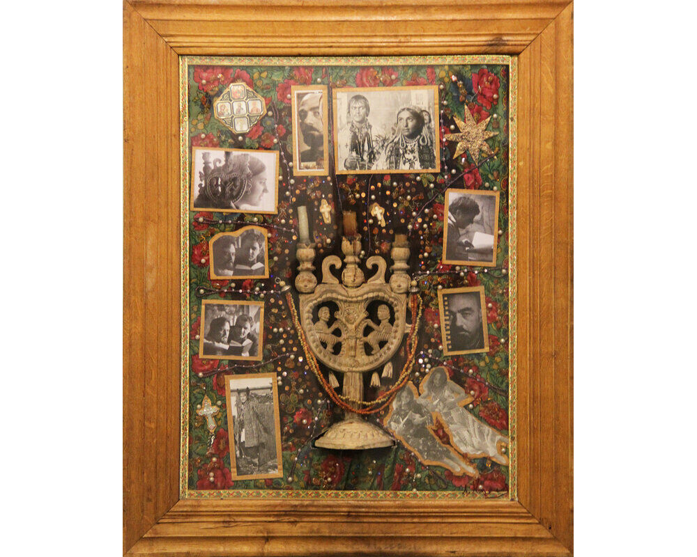 Підсвічник ручної роботи 1867 року з липи використовувався під час зйомок. Фотографії з особистого архіву Л.Кадочникової. Хустка і намисто з села, де проходили зйомки "Тіней...". Хустка розфарбована натуральними барвниками місцевими майстрами на початку ХХ століття. Рама з того ж села, того часу.